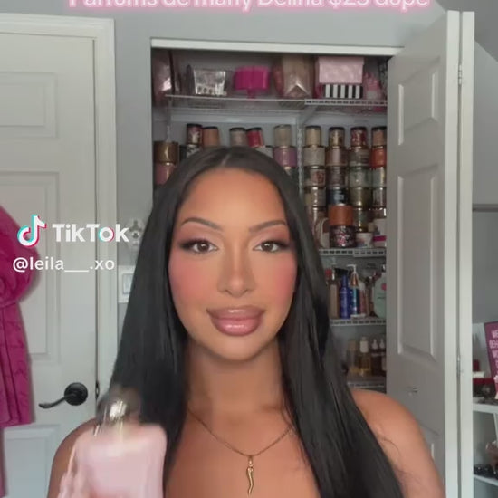 It opens with a flirtation of fresh lychee, rhubarb, and sparkling bergamot, before blooming into velvety rose petals layered with soft woods and whipped musk. It’s juicy, powdery, and perfectly balanced—elegance with a quiet strength.